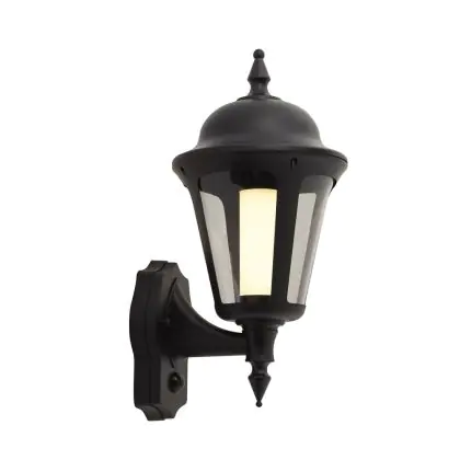 Ansell LED Luce da parete Latina Lanterna Nero - Adatto per E27 fino 42W | IP65 - Sensore di movimento e luce