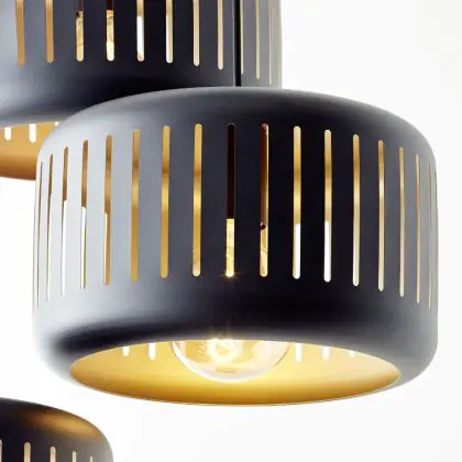 Brilliant Tyas Luce Pendente Metallo Nero Oro | 520mm - Adatto per 3x E27