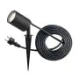 Il design a picchetto consente un facile inserimento nel terreno. Il cavo da 2 metri con spina europea semplifica il collegamento alla rete elettrica.