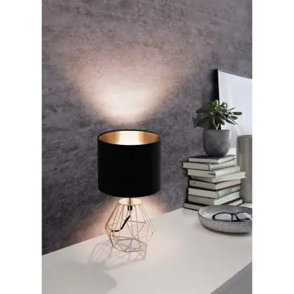 Eglo Lampada Da Tavolo Carlton 2 Acciaio Rame Nero | IP20 - Adatto per 1x E14