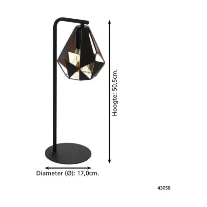 Eglo Lampada Da Tavolo Carlton 4 Acciaio Nero Rame | IP20 - Adatto per 1x E27