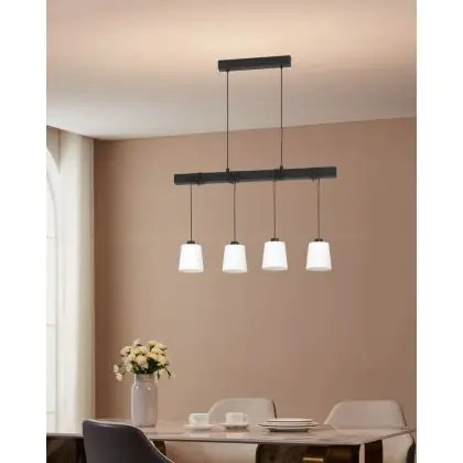 Eglo Luce Pendente Townshend 8 Acciaio Legna Nero | IP20 - Adatto per 4x E27