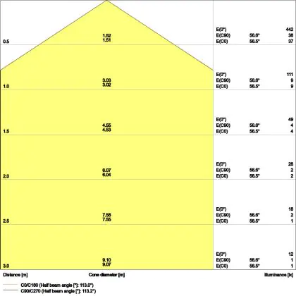 L'apertura del fascio luminoso indica l'angolo del fascio di luce proveniente da una lampada o lampadina. Si misura in gradi (D) e più piccolo è l'angolo, più piccola è l'apertura del fascio di luce.