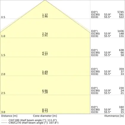 Questo apparecchio può essere usato sia in spazi interni che in spazi esterni, poiché ha indice di protezione contro l'ingresso di acqua e polvere IP65. In generale, un apparecchio con IP44 è resistente a schizzi di acqua e umidità, e può quindi essere installato in spazi esterni molto umidi o esterni riparati, come sono una tettoia. Un apparecchio che invece verrà esposto a intensi getti di acqua deve avere almeno IP54. Questa lampada ha anche un indice di resistenza a urti e impatti di IK08 - 5 Joule
