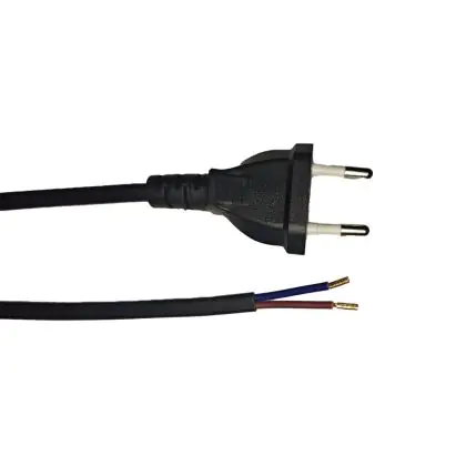 Noxion Euro Cavo di alimentazione Nero - C7 Europlug + Estremità aperte - 2m - 2 pole 0,75mm2