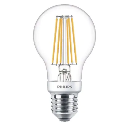 Descrizione Philips Classic LED Bulbo E27 Pera Filamento Chiara 7.5W 806lm - 827 Bianco Molto Caldo | Sceneswitch Sostitutiva 60W