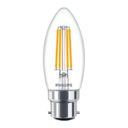 La Philips Classic LED Candela B22 Filamento Chiara 5W 470lm - 827 Bianco Molto Caldo | Dimmerabile - Sostitutiva 40W è la sostituzione perfetta per la tua lampada convenzionale 40W B22. Sostituire con il LED ti offrirà molti vantaggi.