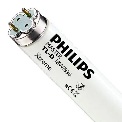 I Philips TL-D Xtreme 18W 830 - 59cm (MASTER) sono tubi fluorescenti che presentano una base G13 e misurano 59cm. La potenza di questi tubi fluorescenti corrisponde a 18W. Tali tubi rientrano in classe energetica 'A'. L'indice di resa cromatica si assesta nell'intervallo di 80-89Ra. La caratteristica peculiare di queste lampade sta nella loro lunga durata veramente eccezionale di 79.000 ore. I tubi in questione, con una temperatura di colore di 3000K, garantiscono una luce bianca calda, adatta per ambienti in cui si ricerca accoglienza e vivacità allo stesso tempo.