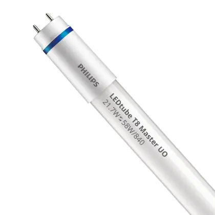 Il Philips Tubo LED T8 MASTER (EM/Mains) Ultra Output 21.7W 3700lm - 840 Bianco Freddo | 150cm - Sostitutiva 58W è l’alternativa perfetta per il tubo fluorescente standard 58W nelle plafoniere con un reattore. Con questo tubo LED hai una garanzia di una vita media utile molto lunga e 5 anni Lampadadiretta.it di totale garanzia. .